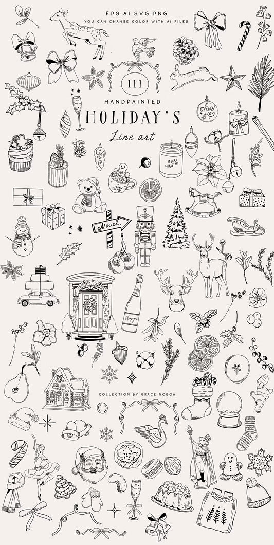 Christmas holiday doodle line art