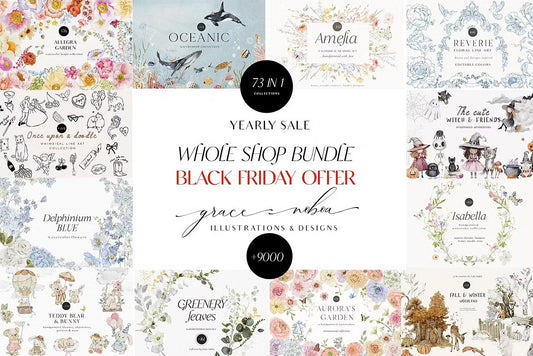 Big WHOLE SHOP ACCESS bundle all time graphics watercolor and line art clipart