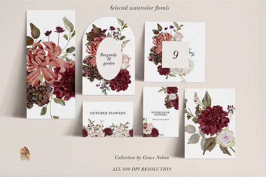 Burgundy & Blush Watercolor autumnal Florals clipart