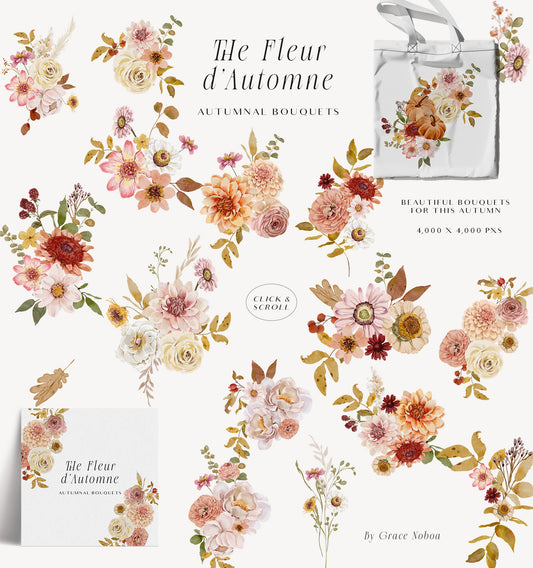Watercolor Autumn fall flowers clipart