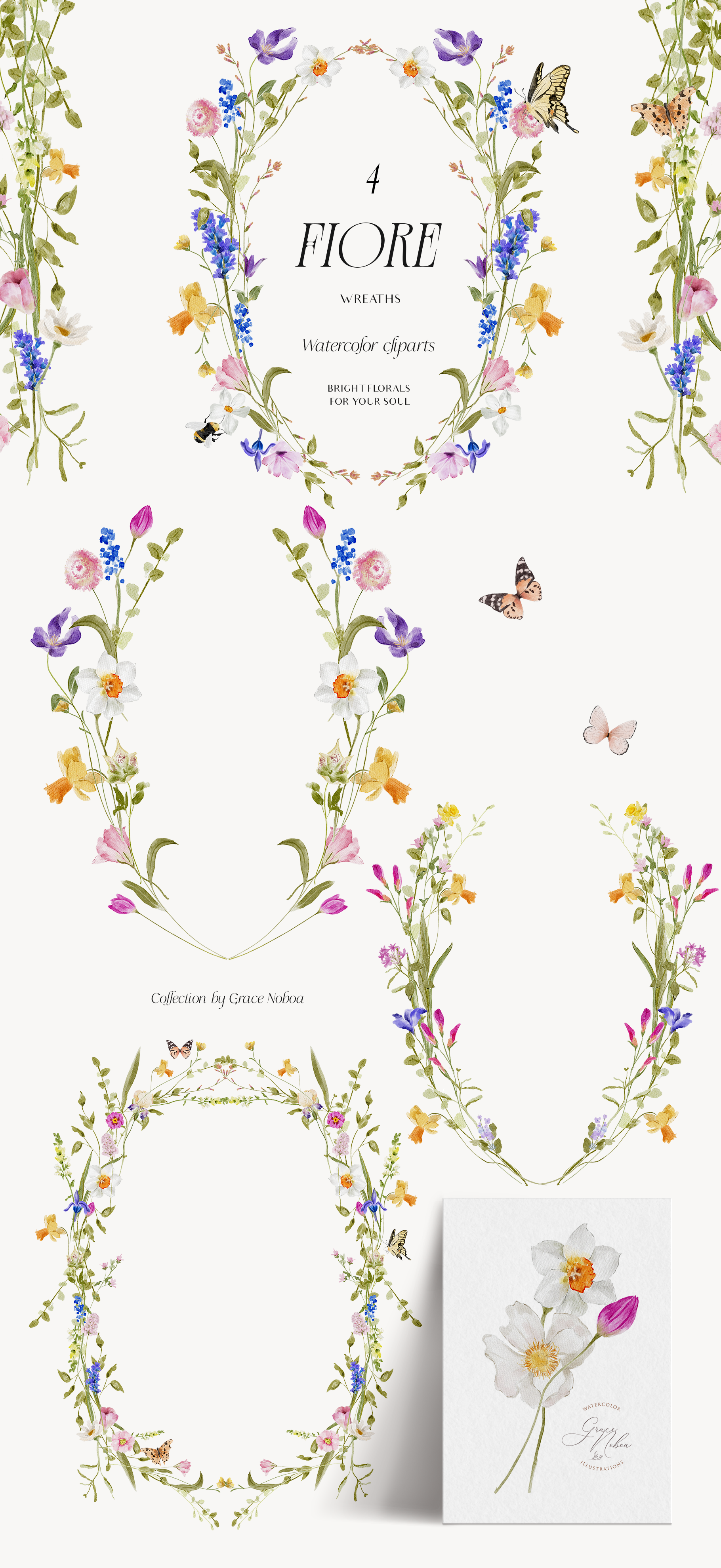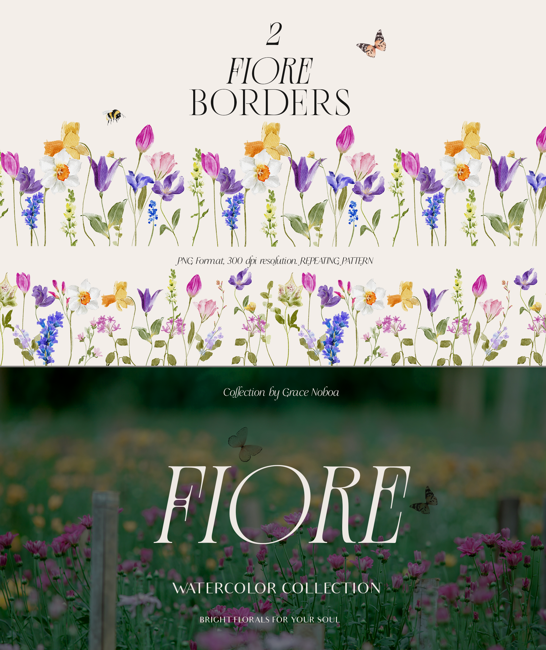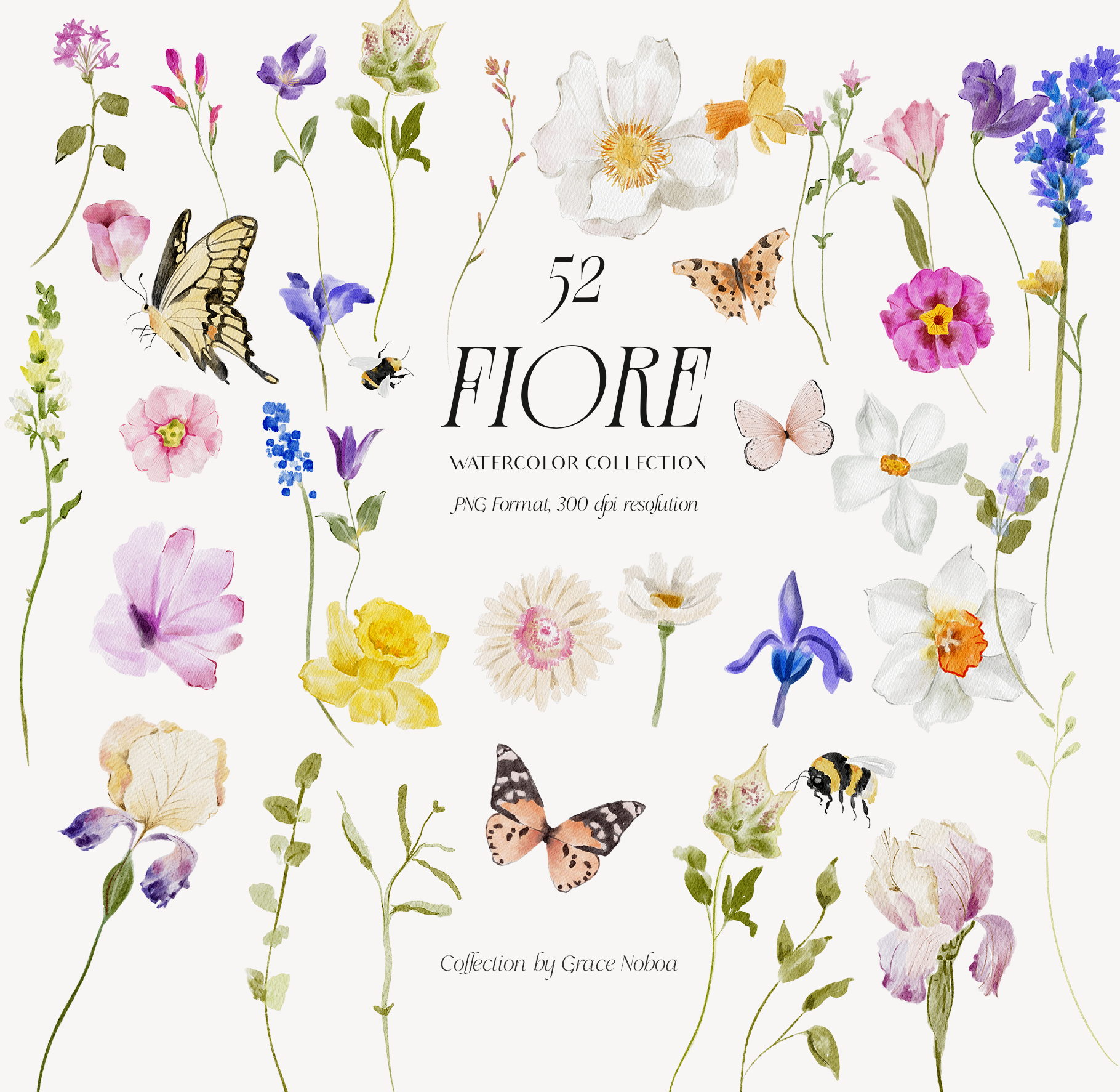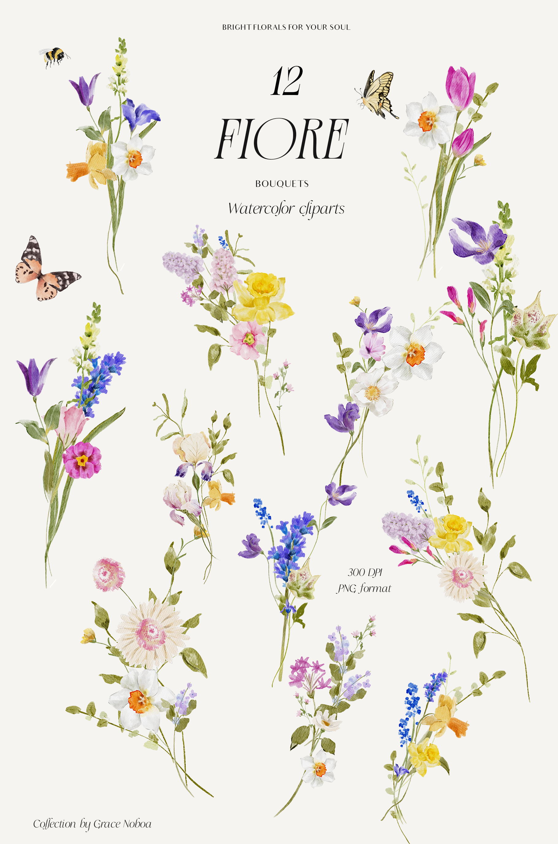 Say hello to my watercolor collection "FIORE" BRIGHT FLORALS FOR YOUR SOUL♥✨ Hope you like this cute collection. Perfect for spring and summer projects from wedding invites to other cute creations inspired by the colorful side of flowers.