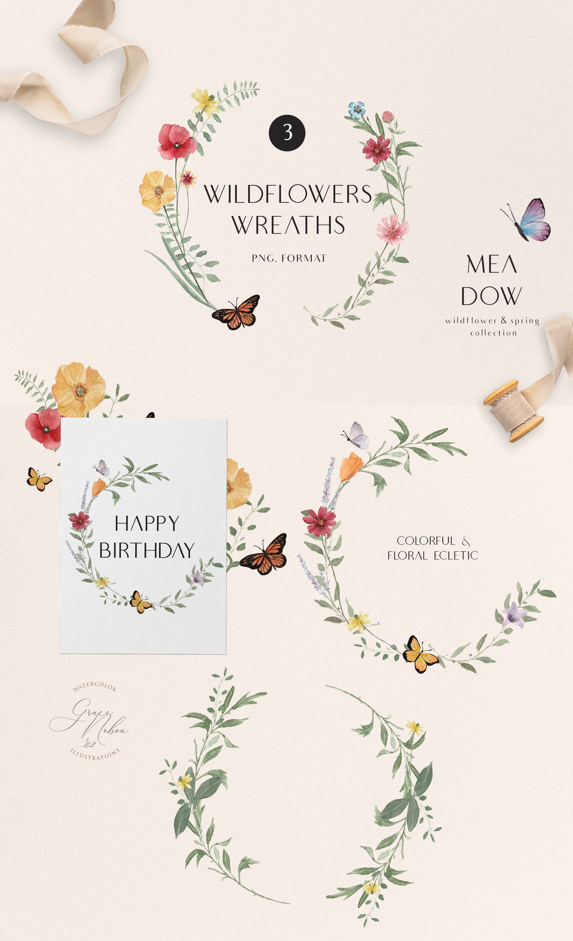 MEADOW COLLECTION is a set full of selected wildflowers and butterflies with such bright colors for creating fun and eclectic projects. This collection is a great addition to your graphic library if need wildflowers with bold colors and details. Would you love another sub collection of these? ♥