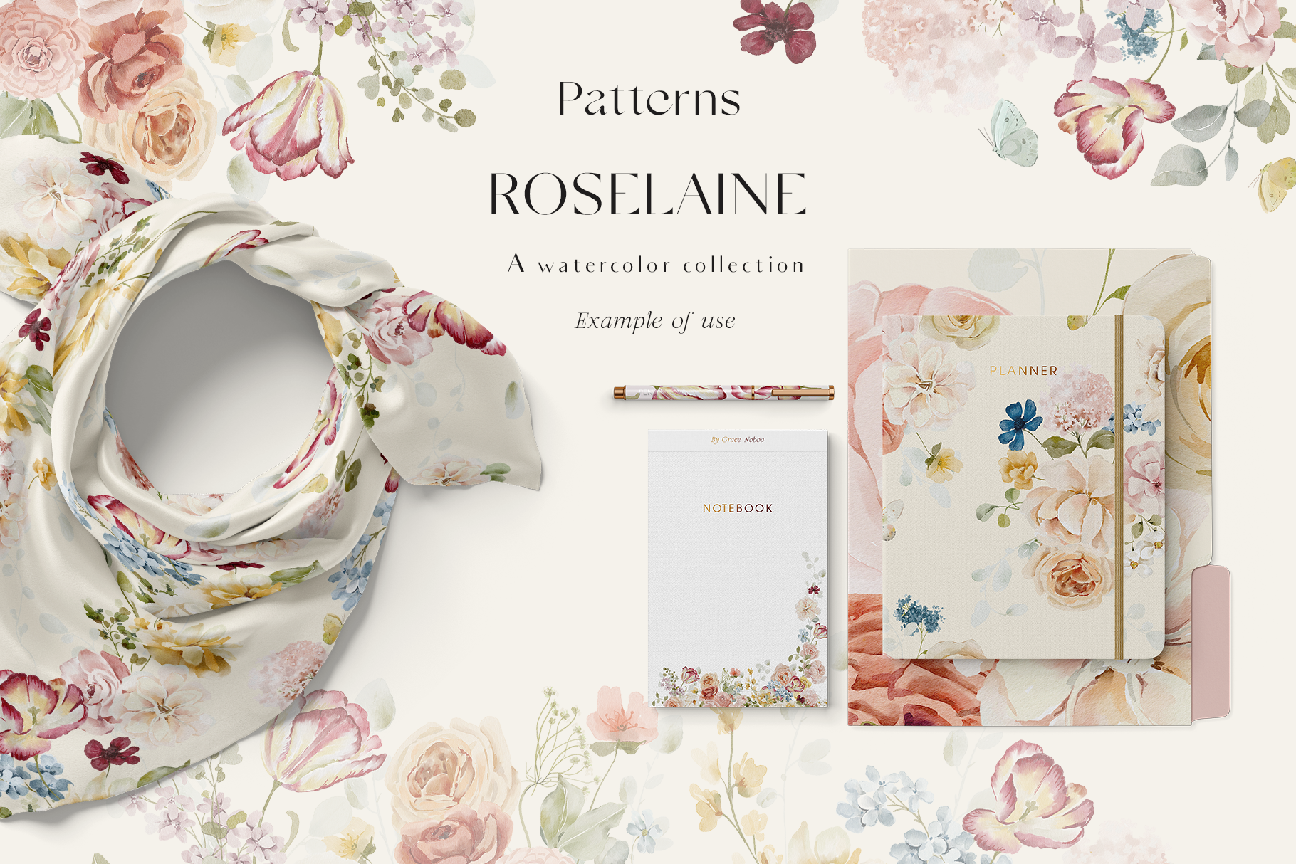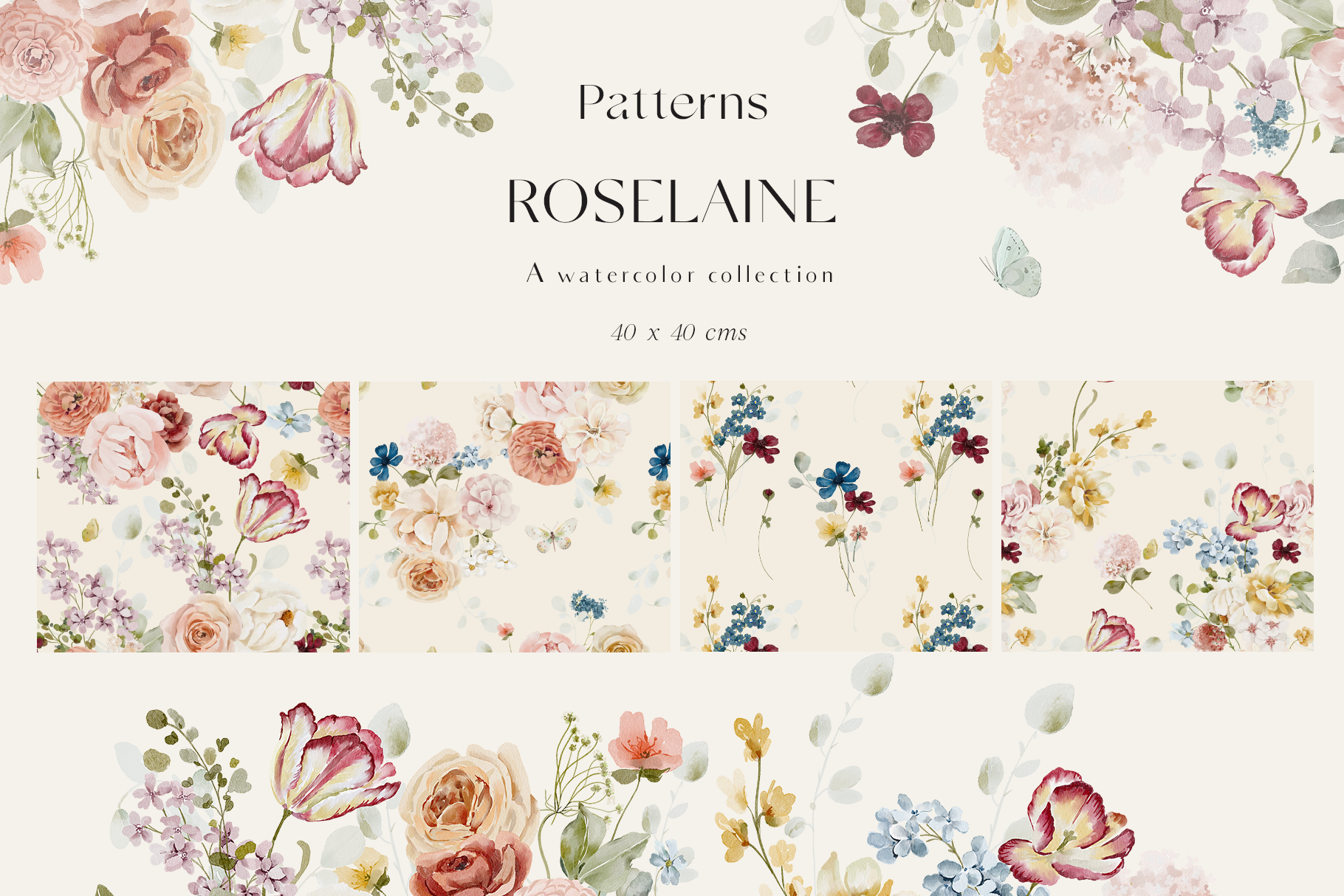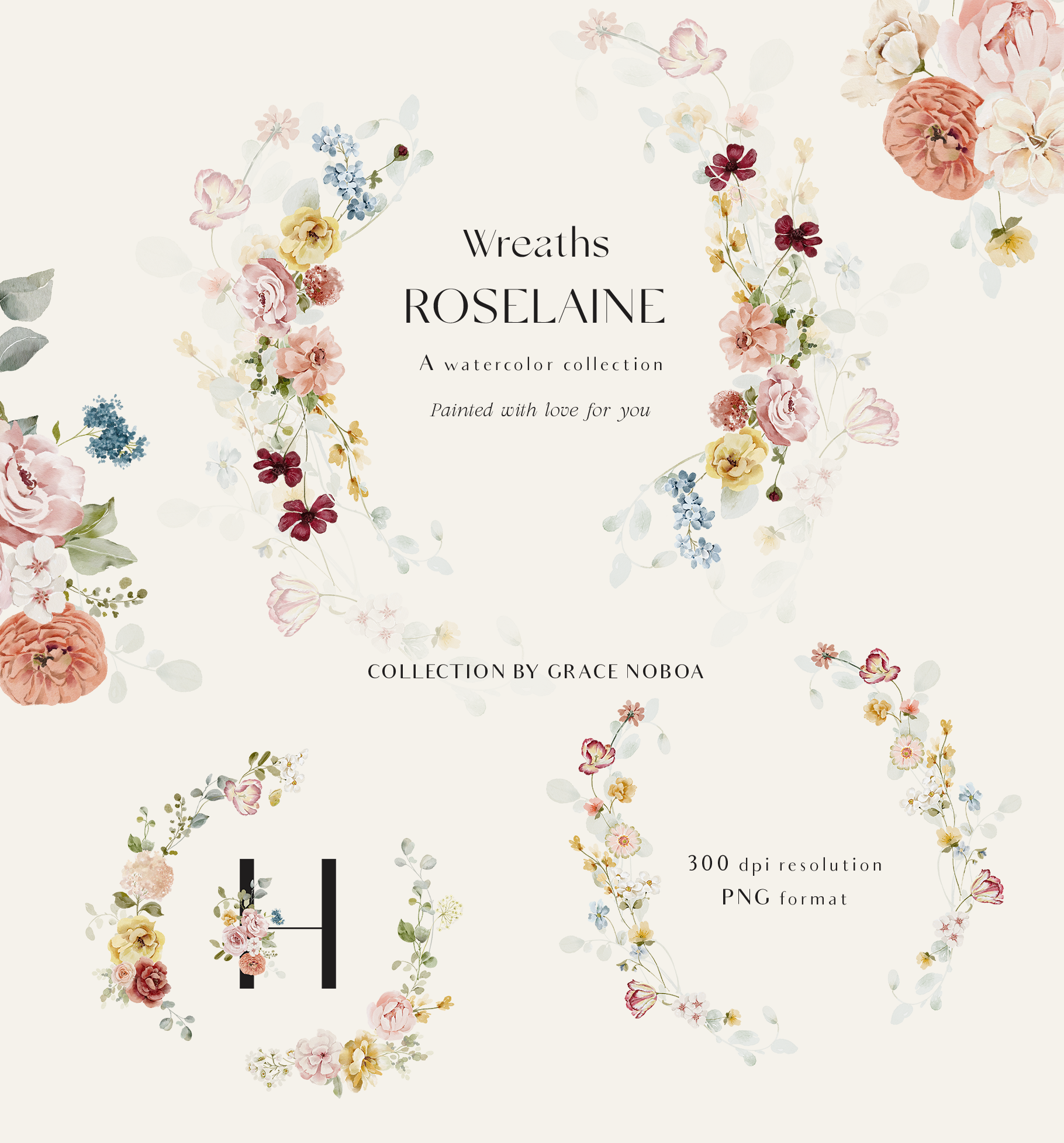 Roselaine is a watercolor floral collection designed for creators, dreamers, and brands who appreciate beauty in every detail. Hand-painted botanicals to elevate your projects with softness, elegance, and charm. Feauturing a color palette of Mustard yellow, red, burgundy, pink blush, blue, indigo, peach, ivory, champagne, violet along with charming butterflies an detailed florals like roses, forget me not, tulips, wax flowers, ranunculus and greenery. A very trendy and timeless color palette, to use like or match your desire color palette