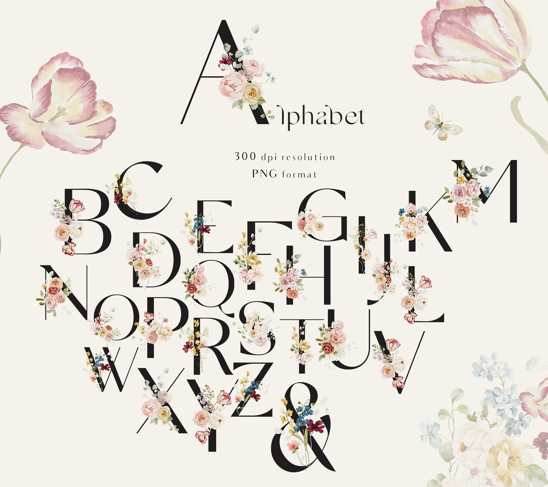 - Floral Alphabet and numbers 4,000 x 4,000 pxs