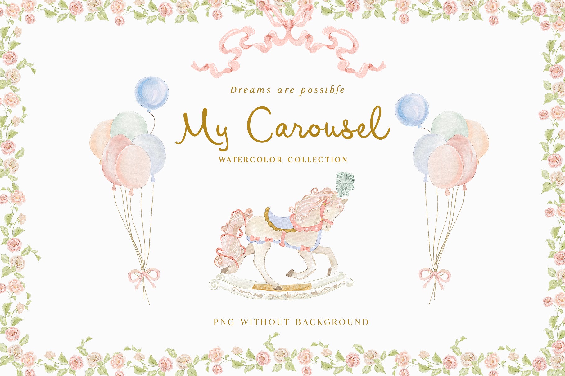 Step into a whimsical world of elegance and charm with the My Carousel Watercolor Collection. This hand-painted digital graphic set features a dreamy carousel theme.
