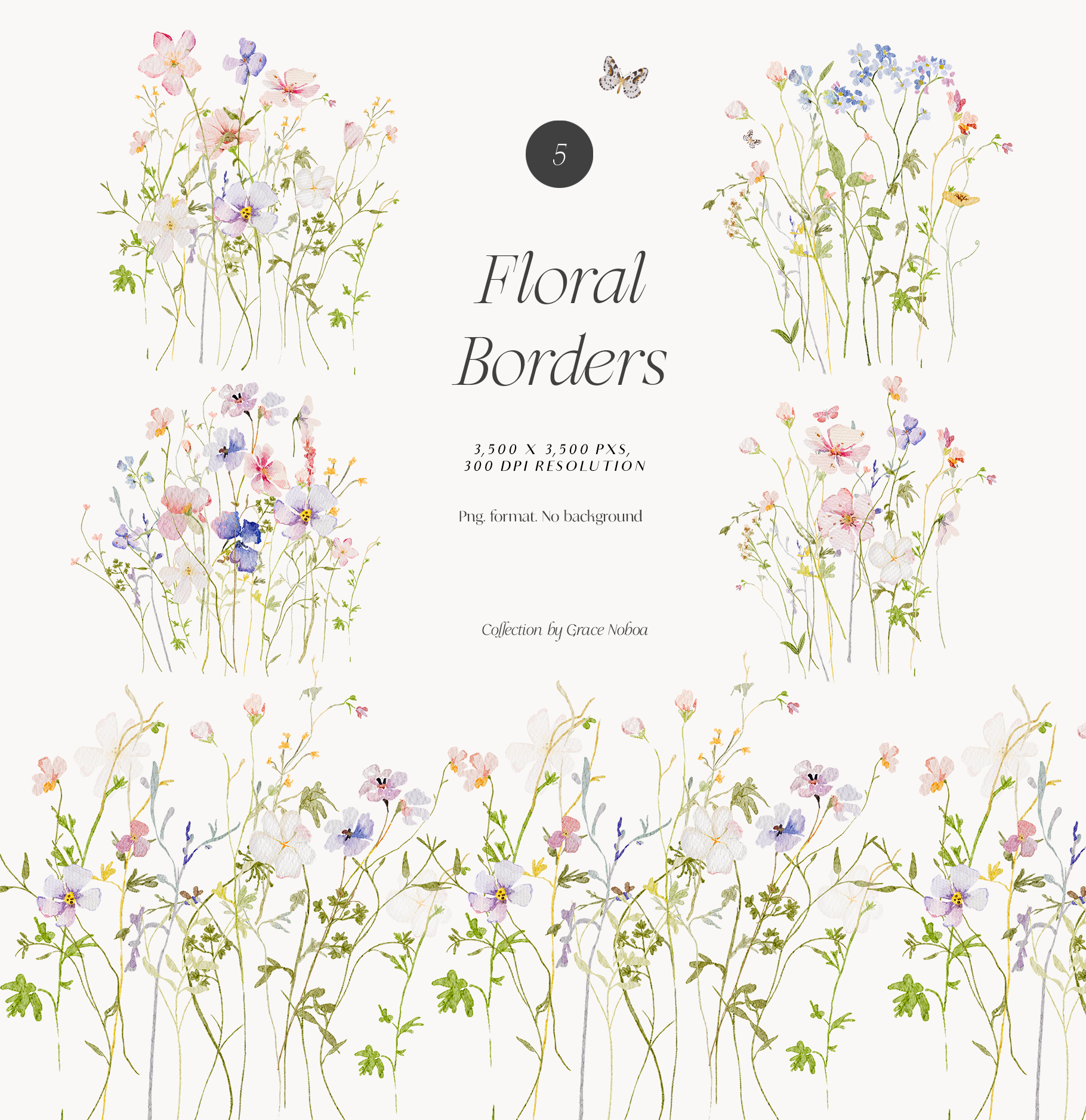 - 5 Floral Borders 300 DPI (3,500x3,500) png. format 300 DPI