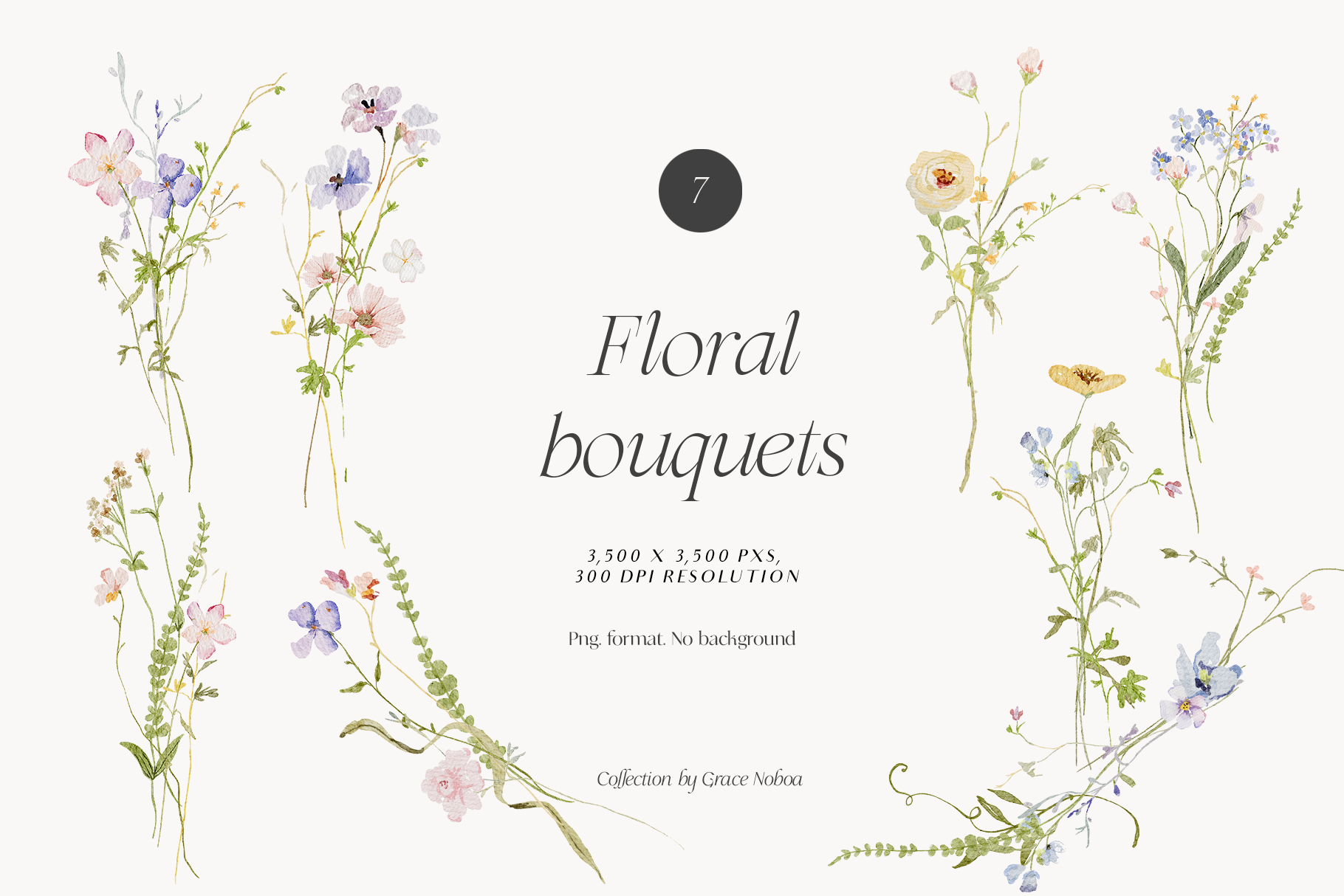 - 8 Floral bouquets (3,500x3,500) png. format 300 DPI