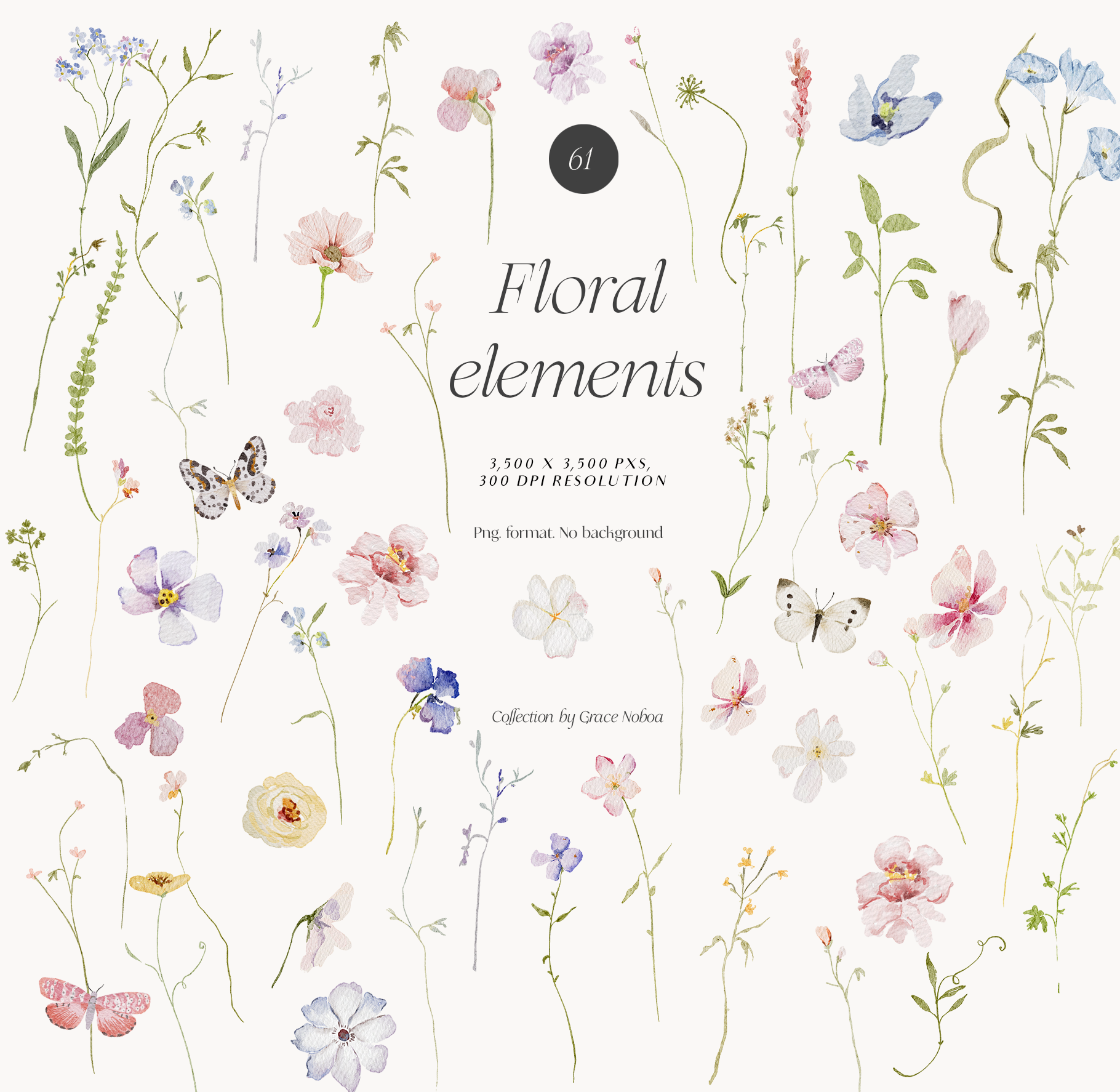 Watercolor Delicate Wildflowers spring cottagecore set