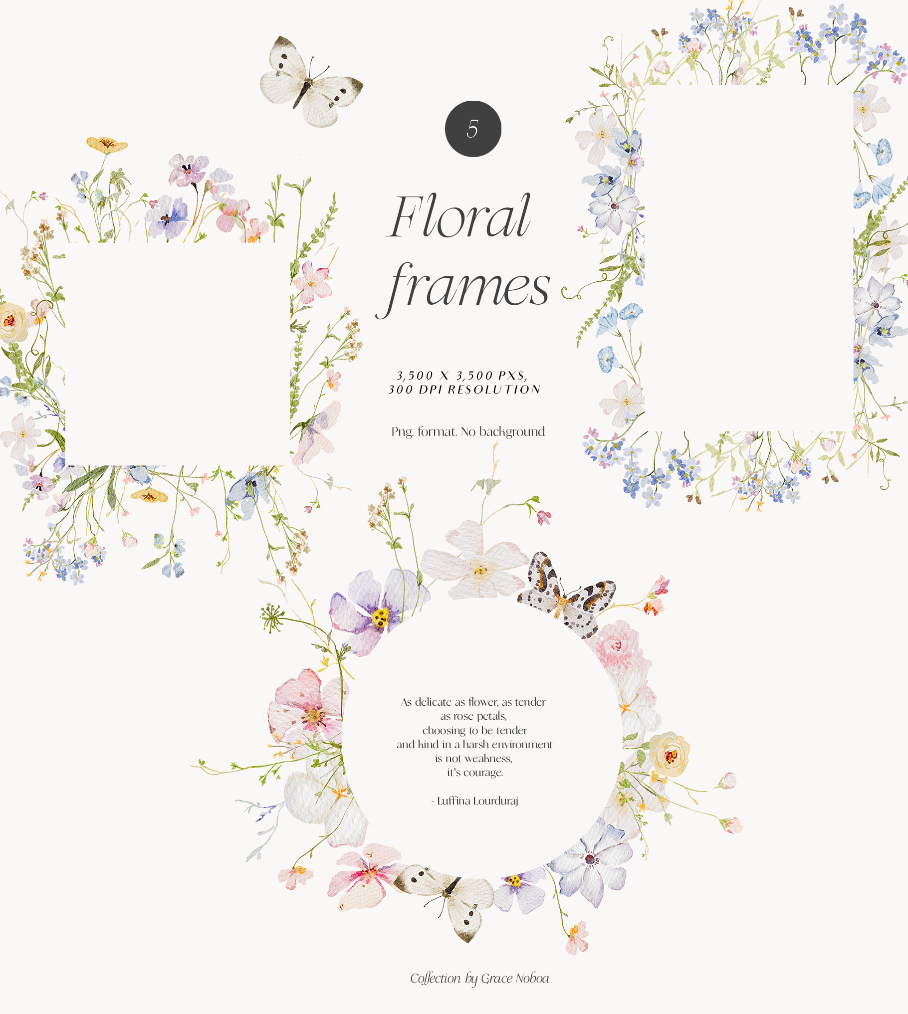 - 5 Floral frames (3,500x3,500) png. format 300 DPI