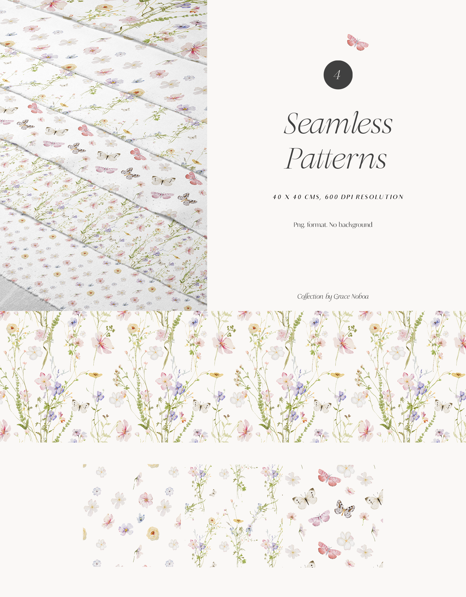 - 4 Floral Patterns (40 x 40 cms) png. format 600 DPI