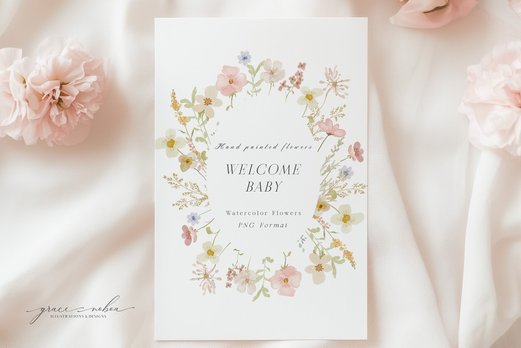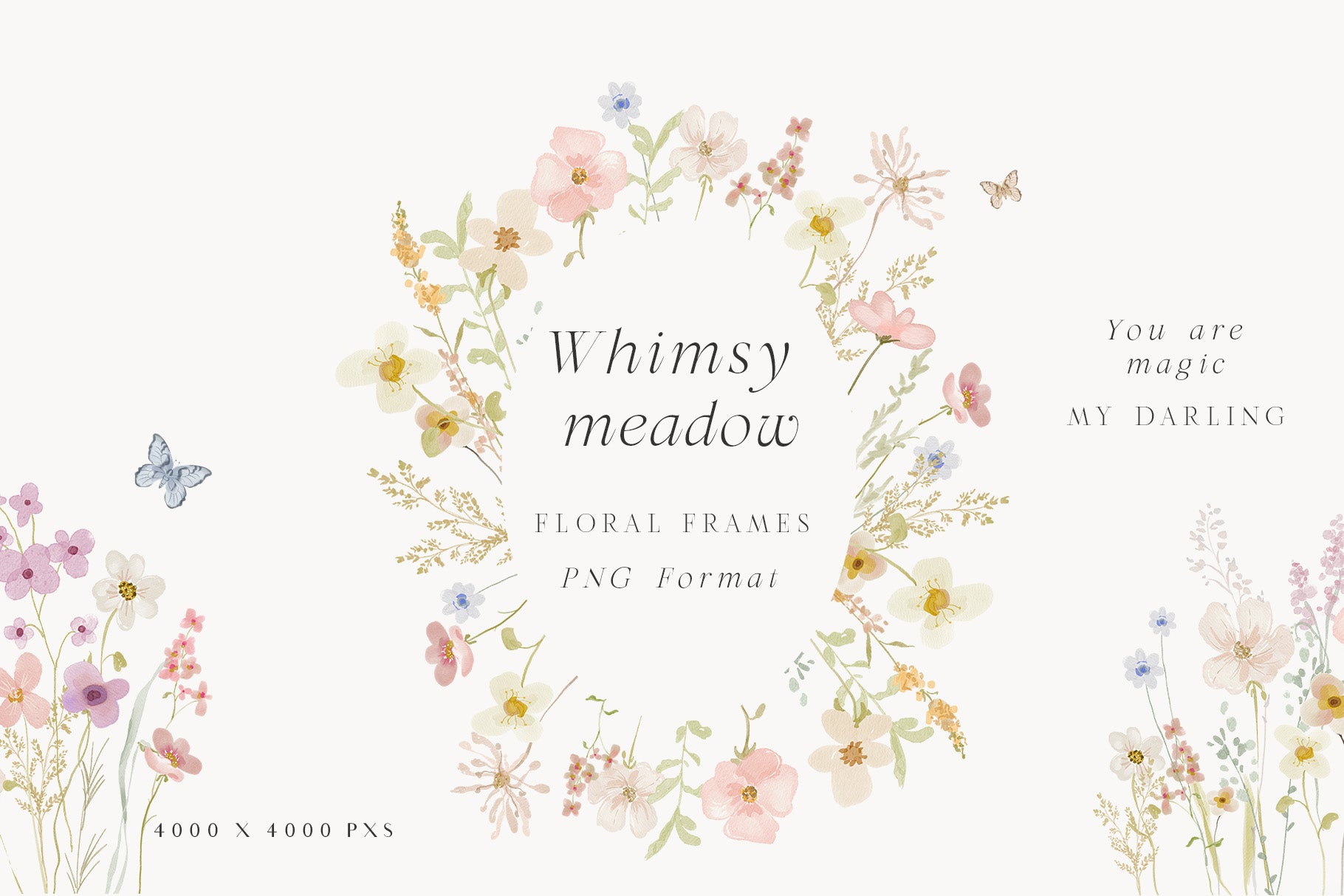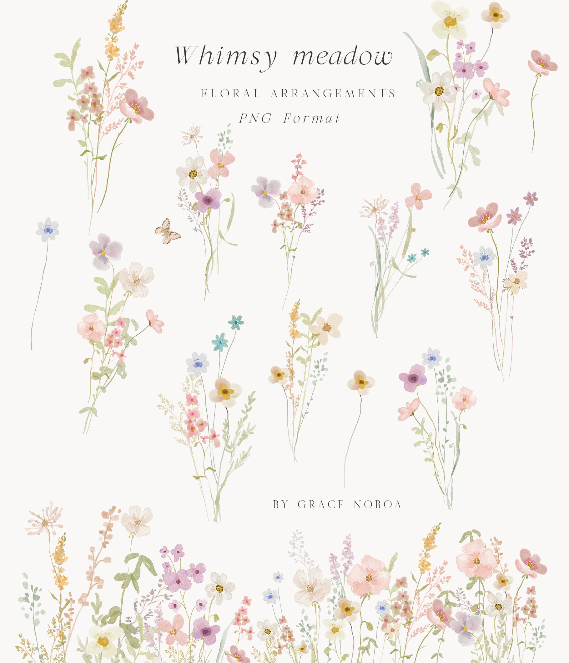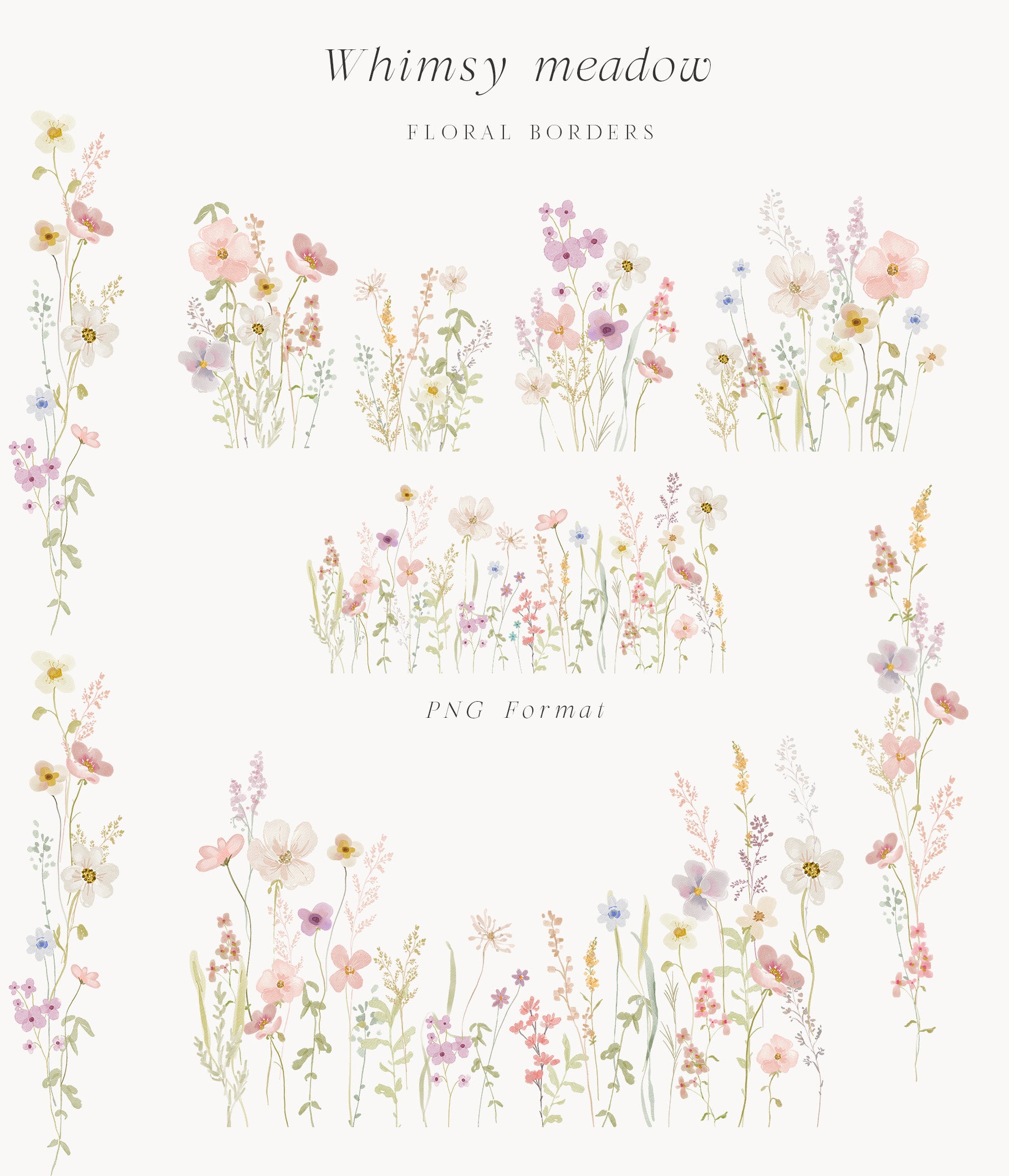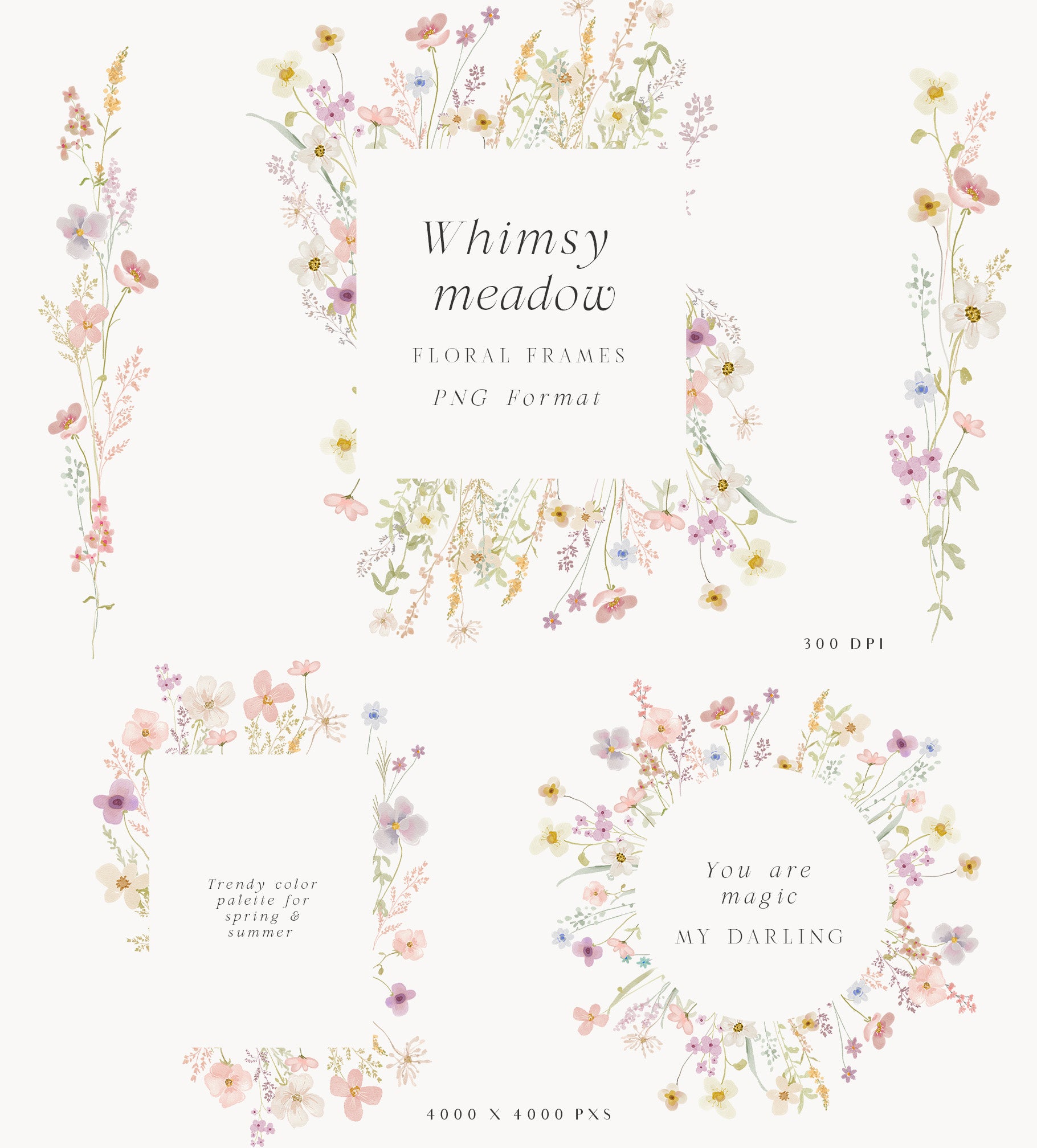 You'll find a variety of charming wildflowers and foliage, floral bouquets pre-arranged compositions ideal for quick and stunning designs, wreaths and frames perfect for invitations, stationery, and branding, seamless patterns High-resolution repeats for fabric, wallpapers, or backgrounds.