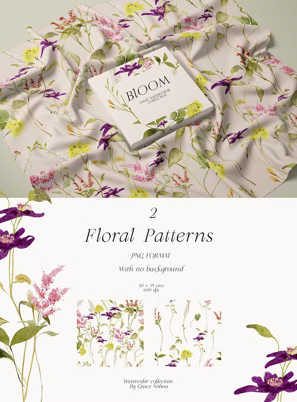 - 2 floral patterns ( 50x 50 cms) png. format